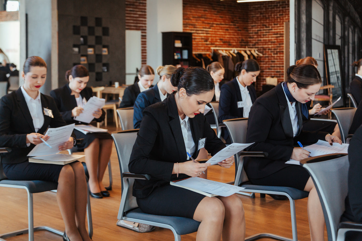 Academia Vreau să fiu Stewardesă organizează frecvent sesiuni de recrutare însoțitori de bord pentru companii aeriene. Ne ocupăm de întreg procesul de selecție a însoțitorilor de bord, de la etapa de aplicații online până la interviul propriu-zis, în colaborare cu echipa de recrutare a companiei aeriene.